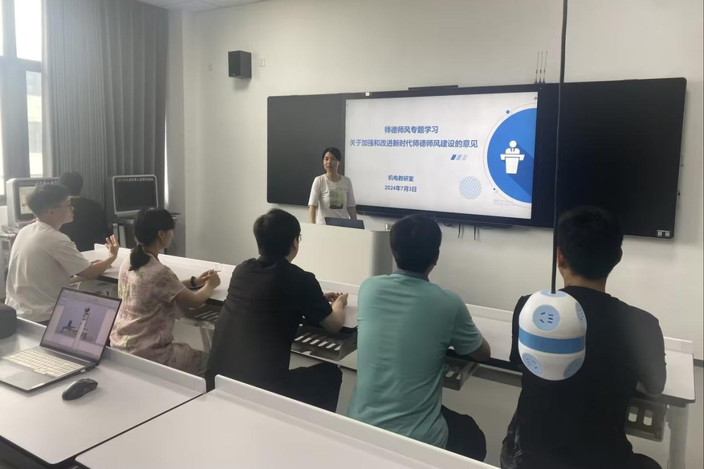 教师被誉为人类灵魂的工程师,是学生成长的引路人。教师的师德师风建设是教育教学事业中不可或缺的一环,同时也是教育教学事业可持续发展的重要保证。7月3日下午,机电教研室围绕师德师风建设的相关文件精神进行了学习,本次活动由朱红娟老师主持。